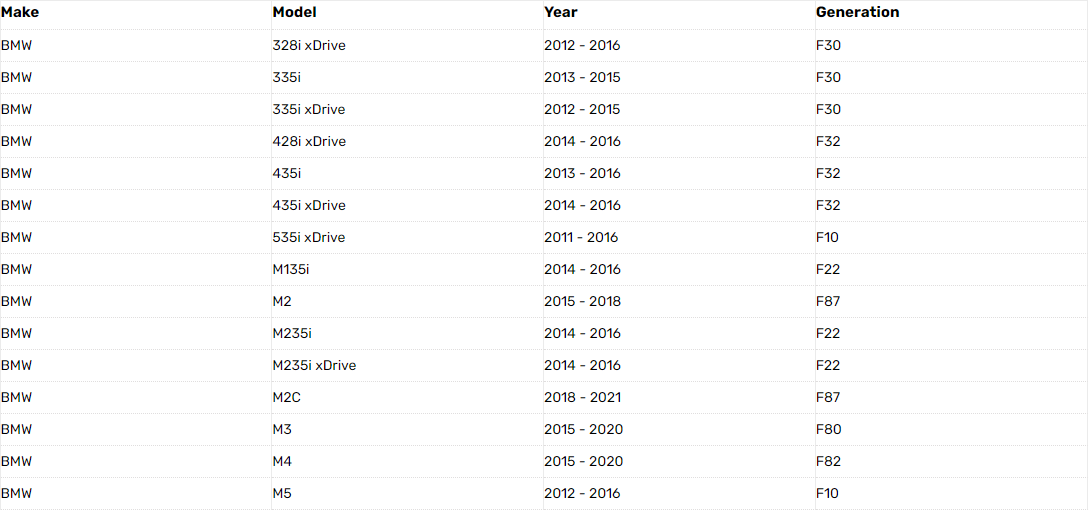 (N20, N26, N52, N54, N55, N63, S63, S55, M52, M54, S54) Engines.